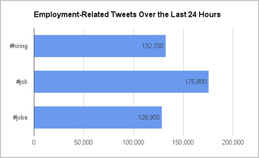 According to one estimate, 92% of employers use Twitter to promote their job openings. Check out how many job-related tweets I found over just the last 24 hours…